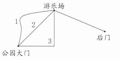 (2) 公园管理员准备从游乐场到后门再修一条路,怎样修最近?画一画。