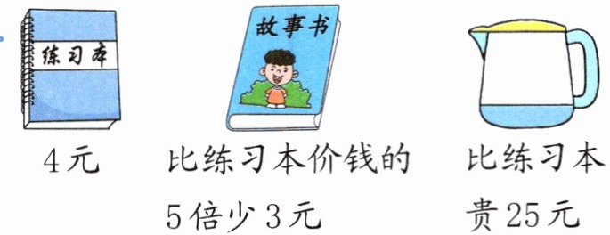 (1)小欣买了一个水壶和一本练习本,一共要付多少元?