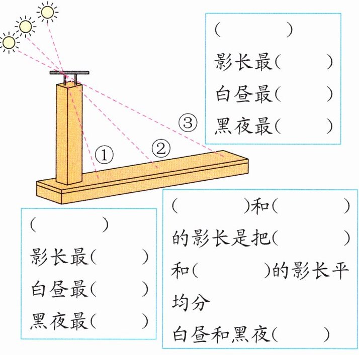 答案:1. 夏至日 短 长 短 春分日 秋分日 夏至日 冬至日 一样长 冬至日 长 短 长