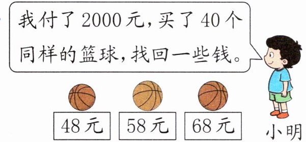 68×40≈2800(元) 小明买的是48元的篮球