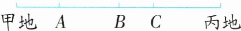 5. 如图,甲地与丙地之间的距离为1600千米。一辆客车从甲地开往丙地,每小时大约行驶78千米,11小时后到达乙地,乙地的位置最有可能在点(