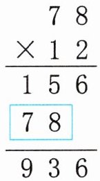1. (南京真题)学校购进 12 副乒乓球拍,每副乒乓球拍 78 元。用下面的竖式计算“78×12”,框出的“78”表示(