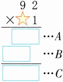 5. (泰州真题)围绕下面的两位数乘两位数的计算,同学们展开了讨论。甲认为A一定等于92;乙认为B的末尾一定有0;丙认为B至少比A大828;丁认为C可能是三位数,也可能是四位数。其中错误的是(