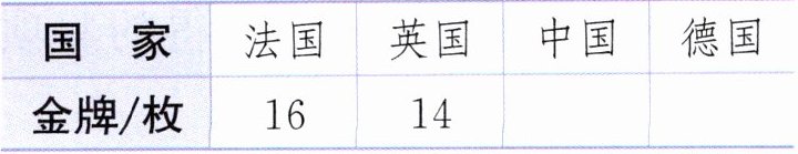 2. (数据意识)下面是2024年巴黎奥运会部分国家金牌数量统计表和统计图(不完整),请补充完整。