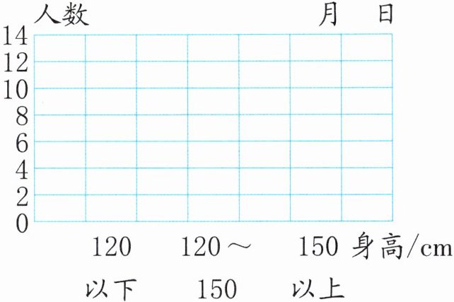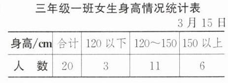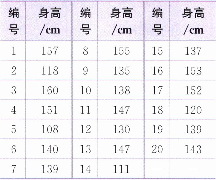 2. 铁道部门原来规定,儿童身高在 $ 120 \mathrm{cm} $ 以下乘火车免票,$ 120 ∼ 150 \mathrm{cm} $ 享半价票。以下是三年级一班的小芳调查的本班 20 名女生的信息。
