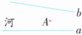 解析:乐乐划船时距离岸边b始终是4米,说明乐乐的划船路线与岸边b恰巧构成一组平行线,过点A 画岸边b的平行线即可。