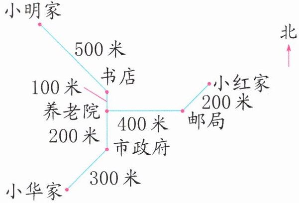 )米到养老院。(2)小红从家出发,先向(