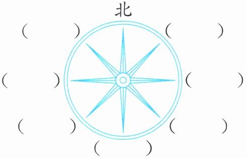 1. 把指南针上的方向填完整。