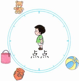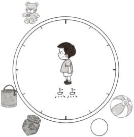 (3)点点的“8 点钟”方向有一个气球,请你用“”标出气球的位置。