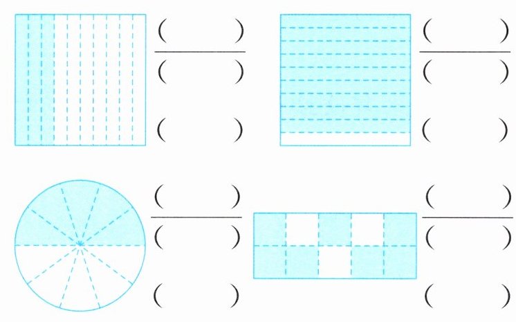 (1) (数形结合)把下面各图中的涂色部分用分数和小数表示出来。