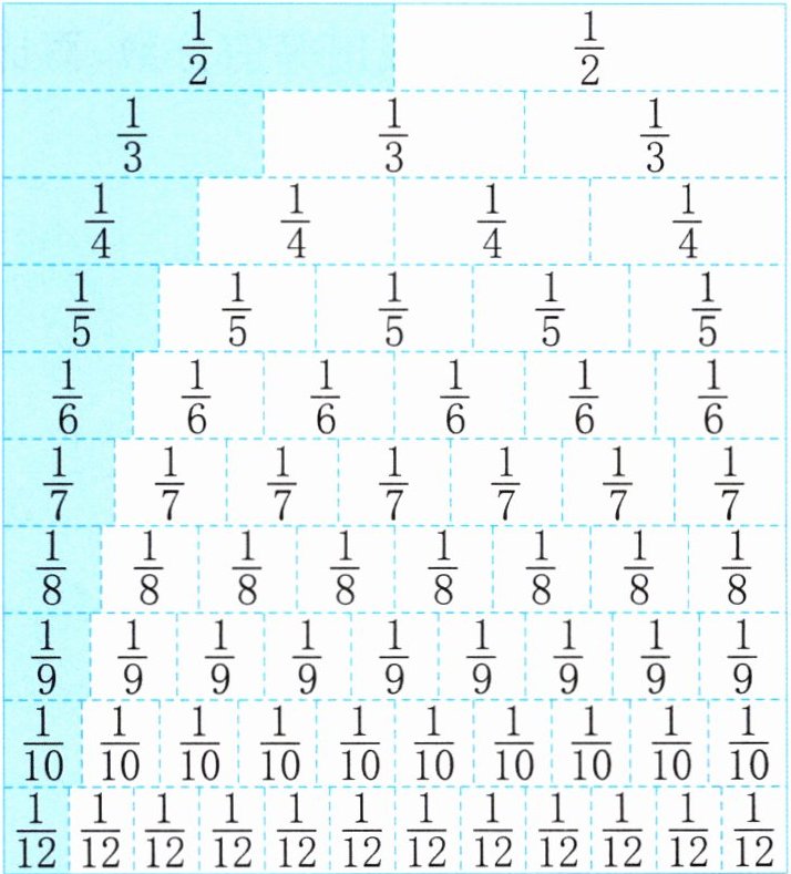 4. 你能从分数墙中找到等值分数吗?