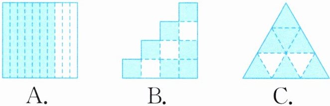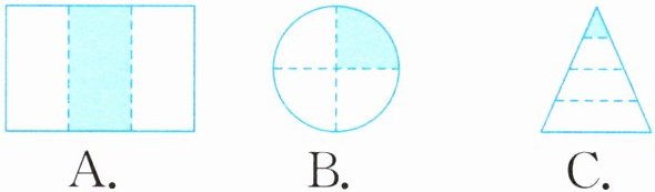 $)$的涂色部分可以用$ \frac{1}{4} $表示。 答案:2.(1)B