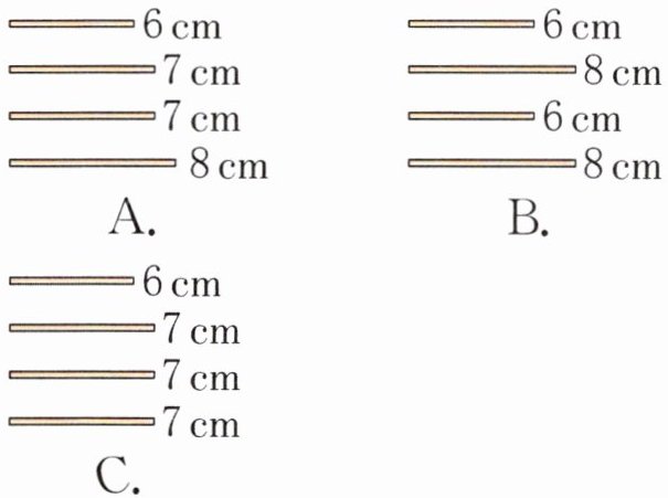 (5)(徐州丰县)三组小棒中,首尾相接能围成长方形的是(