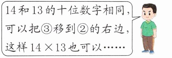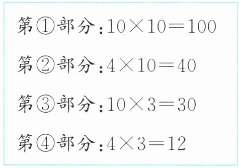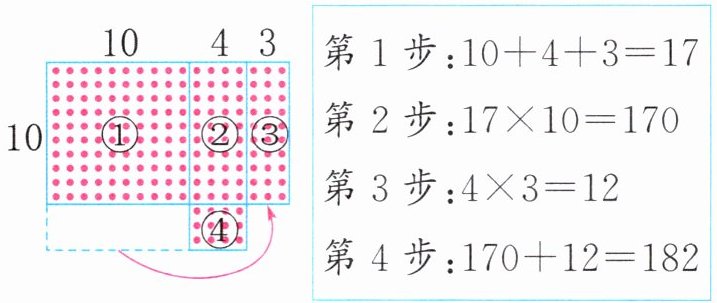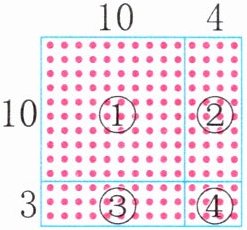 3. (北京海淀区)淘气借助点子图探究“$14×13$”的计算方法与结果时,将点子图分成4个部分。