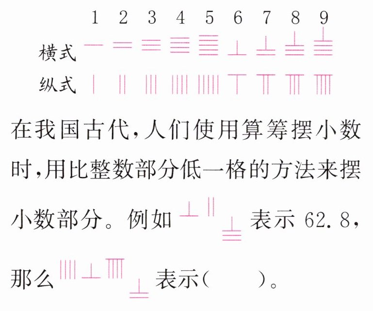 1. (苏州常熟)算筹是我国古代一种用于计数和计算的工具,对应数字的两种摆法如图所示。