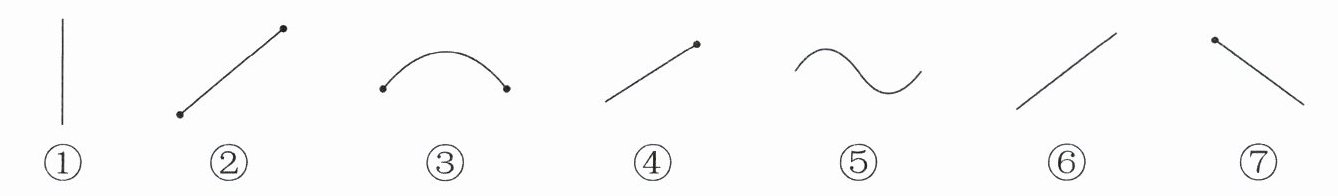射线:(④⑦) 直线:(①⑥) 线段:(②)