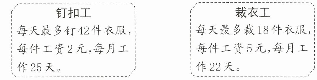 5. 新情境 社会生活 下面是王阿姨在服装厂了解到的两种适合自己的工作。