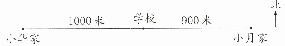 3. 小月家、小华家分别在学校的东面和西面,到学校的路程如图所示。星期天,小华从家里出发去小月家,每分钟走 65 米,走了 18 分钟。这时他的位置在学校的东面还是西面?离学校有多少米?(8 分)