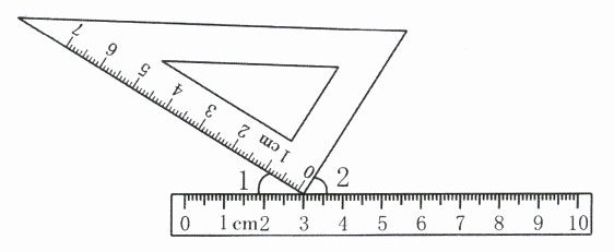 2. 把直尺和三角板按如图所示的方式摆放,∠1=32°,则∠2=(