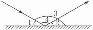 10. 右上图是一束光经一面镜子反射的示意图。已知∠1=∠2,∠3=150°,则∠4的度数是(