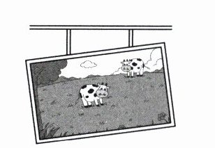 6. 左下图的画挂歪了,乐乐将挂画的两根绳子的长度调成一样长后,画就正了。这是运用了平行线之间的(