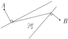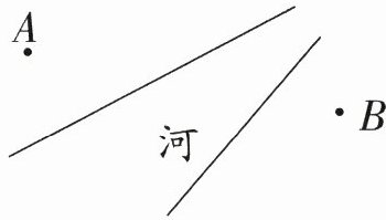 荣老师要从点A处走到河边坐船,去河对岸的点B处参加业务培训。请你帮他设计一条步行路程最短、总路程尽量短的路线,画一画,并说明设计的理由。