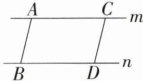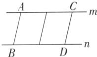 3. (1)如图,m,n是两条互相平行的直线,AB,CD是两条夹在m,n之间互相平行的线段。量一量线段AB,CD的长度,你发现了什么?(5分)