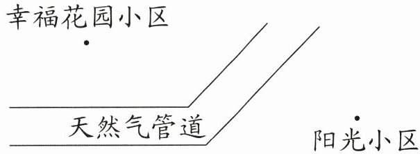 小区和阳光小区准备安装天然气管道,为了使安装的管道最短,你能设计出管道的安装路线吗?画一画。(4分)答案: