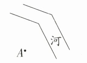 2. 如右上图,小明在点$A$处,要到河边取水,请画出最短的行走路线。(2分)