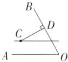 1. 如左下图,过点$C$画出边$OB$的垂线段$CD$和边$OA$的平行线。用没有刻度的直尺和圆规画一条线段$EF$,使它等于$CD+OD$。(6分)