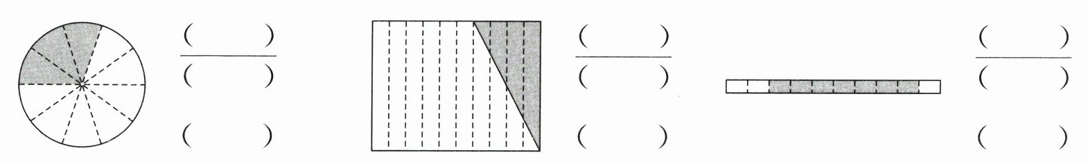 )剩下的多。答案:7. 小越 解析:方法一:找等值分数。$\frac{4}{5}=\frac{8}{10}=\frac{12}{15}=\frac{16}{20}$,$\frac{3}{4}=\frac{6}{8}=\frac{9}{12}=\frac{15}{20}$,所以$\frac{4}{5}>\frac{3}{4}$。因为小越看的少,所以小越剩下的多。方法二:比较剩下的。小吴还剩下$1-\frac{4}{5}=\frac{1}{5}$,小越还剩下$1-\frac{3}{4}=\frac{1}{4}$,$\frac{1}{5}<\frac{1}{4}$,小越剩下的多。