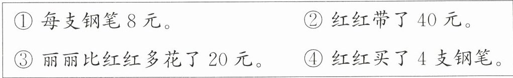 (1)要求“红红还剩多少元”,需要用到的信息是(