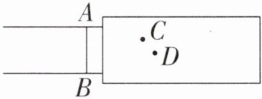 3. 如图所示为亮亮跳远后的示意图。AB是起跳线,C是左脚后跟的落点,D是右脚后跟的落点。如果用尺子量亮亮的跳远成绩,那么应测量哪个落点到起跳线的距离?请画出示意图并说明理由。