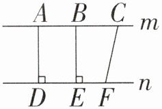 2. 如图,m//n,在直线m与直线n之间有三条线段,下面的结论中,不正确的是(