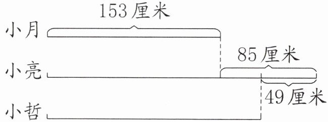 1. 小月、小亮和小哲参加运动会,三人的跳远成绩如图所示。求小哲跳远的成绩,列式正确的为(