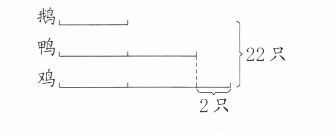 鹅的只数:$(22 - 2) ÷ 5 = 4$(只)