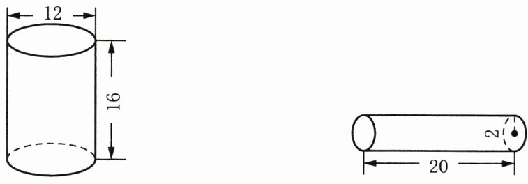 左侧圆柱表面积为$\boldsymbol{264π\ \mathrm{cm}^2}$,右侧圆柱表面积为$\boldsymbol{88π\ \mathrm{cm}^2}$