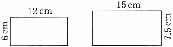 观察两个长方形的长和宽,可组成比例12:6=15:7.5。根据比例的基本性质进行检验:计算两外项之积12×7.5=90,两内项之积6×15=90,由于两内项之积等于两外项之积,所以该比例成立。