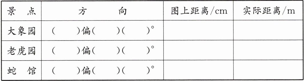 4. 下面是五岭动物园的平面图。以猴山为观测点,填写表格。