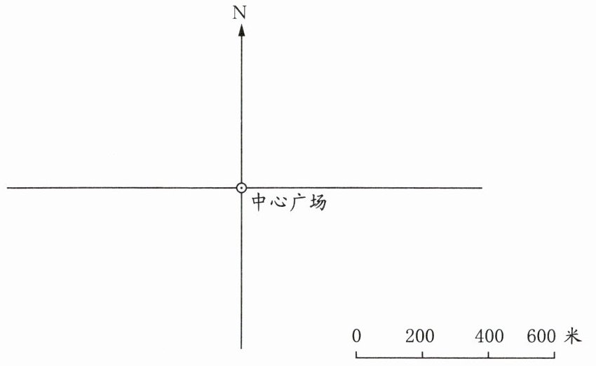 3. 以中心广场为观测点,按指定方向和图上距离标注各场所位置: