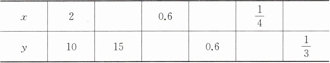 6. 已知 $ x $ 和 $ y $ 成正比例,把下表填写完整。