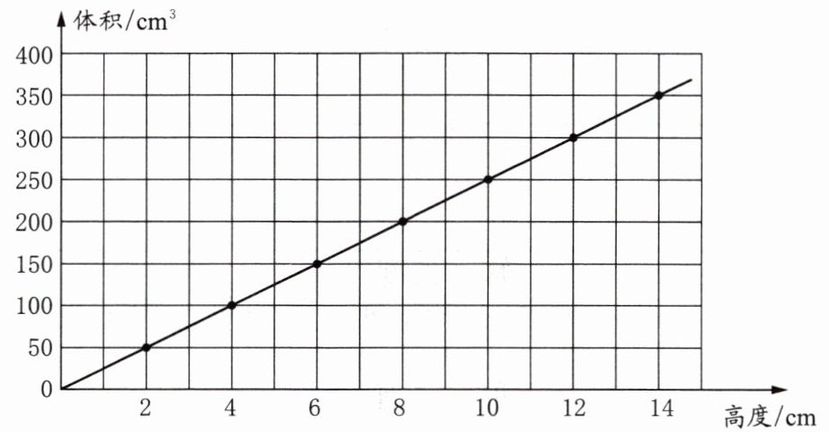 2. 小明做了一次实验,把不同数量的水倒入同样的杯子,分别测得杯中水的高度和水的体积,并画出了下面的图像。