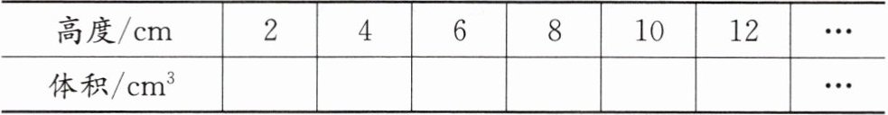 (3)利用图像估计,杯中水的高度是3 cm时,水的体积是()cm³;杯中水的体积是275 cm³时,水的高度是()cm。