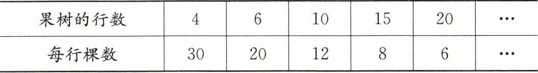 (1)写出几组相对应的果树的行数和每行棵数的积。积相等吗?
