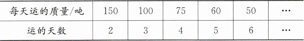 (1)写出几组相对应的每天运的质量和运的天数的积。这个积表示的实际意义是什么?
