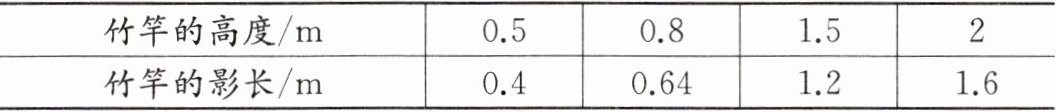 在同一时间、同一地点,阳光下竹竿的高度和影长()。