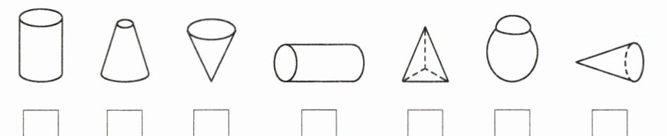 1. 下面物体主体部分的形状,是圆柱的画“○”,是圆锥的画“△”。