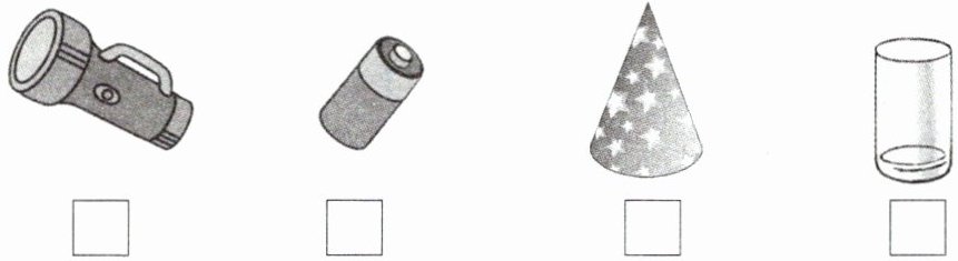 本题借助生活常见物体,考查学生对圆柱、圆锥外形特征的识别能力,帮助学生将立体图形与生活实物建立关联,深化对几何图形的认知。