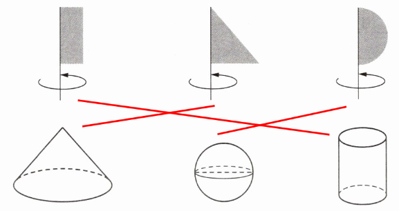 7. 如下图,把长方形、直角三角形和半圆形的小旗绕旗杆旋转一周,各形成什么图形?连一连。