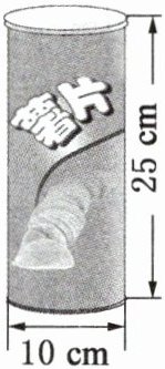 (2) 商标纸的面积即为圆柱的侧面积,根据圆柱侧面积公式:侧面积=底面周长×高,代入数据计算:$10π×25=250π$(平方厘米)。